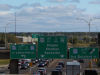 Westbound view showing the sign giving the distances to Moncton, Riverview and Fundy National Park. ![]() Photograph taken in June 2024. |