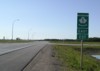 Westbound view showing the marker west of the junction of PR 207, which now has the direction sign in green. ![]() Photograph taken in April 2011. |