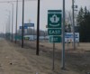 Westbound view showing the new Clearview advance signage for Symington Road (Road 20E). ![]() Photograph taken in July 2011. |