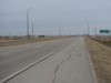 Eastbound view at Symington Road showing a closeup of the first eastbound marker east of Winnipeg not paired with Route 135. ![]() Photograph taken in April 2009. |