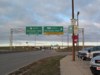 Westbound view on Portage Avenue past Cavalier Drive showing advisory signs for the Red River Exhibition and Assiniboia Downs turnoff. Both are accessible west of the upcoming Perimeter Highway. ![]() Photograph taken in January 2013. |
