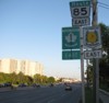 Eastbound view on Portage Avenue near Conway Street. This Route 85/PTH 1/Yellowhead sign combination follows PTH 1 on Portage Avenue from the Perimeter Highway to the intersection of Broadway west of downtown. ![]() Photograph taken in December 2008. |