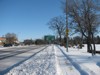 Eastbound view on Portage Avenue at Assiniboine Park. The sign reminds motorists that though the park is to the right, there is no vehicular access to the park through this entrance and that they must proceed on and turn south on Route 90 to gain entrance to the park. ![]() Photograph taken in December 2008. |
