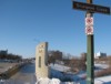 Westbound view on Portage Avenue at Library Place showing the triumvirate of markers. ![]() Photograph taken in February 2011. |