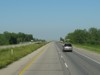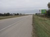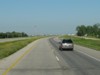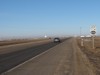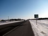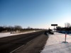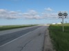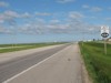 Eastbound view after crossing the Assiniboine River. Ahead is some government propaganda promoting recent road work. ![]() Photograph taken in October 2009. |