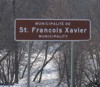 Eastbound view entering the RM of St. François Xavier showing a closeup of the sign. ![]() Photograph taken in February 2009. |
