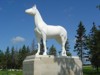 Westbound view showing the white horse statue just west of the junction of PTH 26. Strangely, though the statue is prominently visible from PTH 1, has a small park at its base and has historical significance in the area, there is no sign off PTH 1 or PTH 26 for it. ![]() Photograph taken in June 2007. |