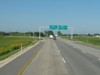 Westbound view approaching the junction of PTH 1A showing the overhead signage at the exit. ![]() Photograph taken in July 2010. |