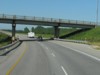 Westbound view passing under the ramp that carries traffic from eastbound PTH 1A. ![]() Photograph taken in July 2010. |