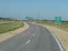 Westbound view approaching a railway overpass. ![]() Photograph taken in July 2010. |