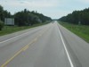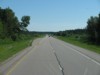 Westbound view approaching the divided highway. The highway will remain twinned for most of the way through Manitoba. ![]() Photograph taken in July 2011. |