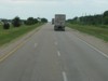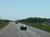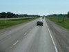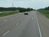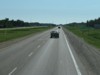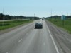 Westbound view past the junction of PTH 11 showing the sign giving the distances to Winnipeg and Brandon. ![]() Photograph taken in July 2011. |