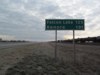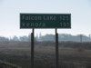 Eastbound view showing the sign giving the distance to Falcon Lake and Kenora. ![]() Photograph taken in April 2009. |