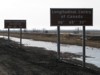 Eastbound view at the Longitudinal Center of Canada showing a closeup of the new Clearview signs. ![]() Photograph taken in March 2010. |