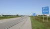 Eastbound view showing the advance signage for the exit to the Mennonite Heritage Village, a Manitoba Star Attraction located north of Steinbach. ![]() Photograph taken in May 2011. |