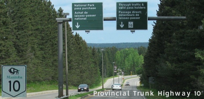 PTH 10 is one of Manitoba's most prominent and vital highways, covering much of Western Manitoba beginning at the Manitoba/North Dakota border at the International Peace Gardens and ending in Flin Flon at the Manitoba/Saskatchewan border. On its way north, the route passes through Boissevain to Brandon, Manitoba's second largest city, before continuing north to Minnedosa. North of Minnedosa, the highway proceeds through Riding Mountain National Park, where speeds are reduced to 80 km/h along the scenic, winding route. After leaving the park, PTH 10 joins with PTH 5 and passes around Dauphin, then resumes its northerly course towards Swan River, The Pas and ultimately Flin Flon.