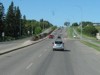 Northbound view approaching the David Thompson Bridge that crosses the Assiniboine River. ![]() Photograph taken in August 2010. |
