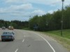 Northbound view passing the turnoff for Wasagaming and Clear Lake. ![]() Photograph taken in July 2010. |
