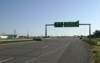 Eastbound view showing the overhead signage at the junction of PTH 59/Route 20 (Lagimodière Boulevard). ![]() Photograph taken in August 2008. |