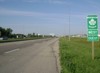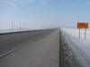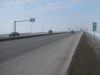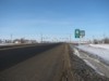 Westbound view past the junction of PTH 59 showing the newly installed marker featuring Clearview numbering. ![]() Photograph taken in November 2011. |