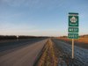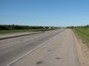 Eastbound view approaching the South Perimeter Bridge that crosses the Red River. ![]() Photograph taken in April 2013. |