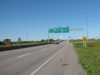 Westbound view west of the South Perimeter Bridge that crosses the Red River. ![]() Photograph taken in July 2009. |