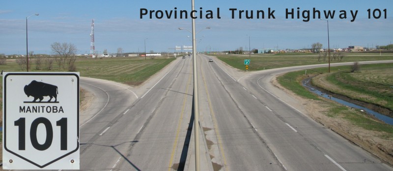 PTH 101 comprises the northern part of the Perimeter Highway that encircles the City of Winnipeg. Unlike PTH 100, the southern part of the Perimeter Highway, it is not signed with the Trans-Canada designation. It both starts and ends at PTH 1, the Trans-Canada Highway, and is twinned and divided through its entire length except for a brief stretch east of PTH 59 in the RM of East St. Paul. Click here to show the route.