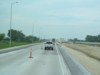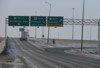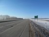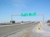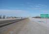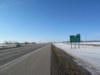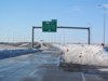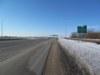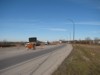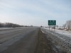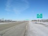 Southbound view approaching the exit for PTH 1 west. ![]() Photograph taken in March 2009. |