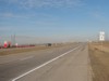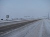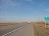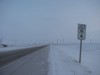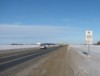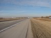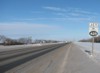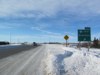 Northbound view approaching Road 63N. At right is the sign indicating the entry into the RM of Rosser. ![]() Photograph taken in November 2009. |