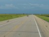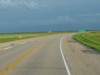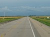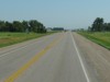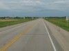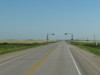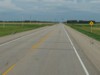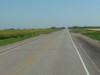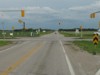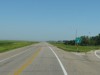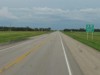 Northbound view approaching Rat Creek. At right is the sign giving the distances to Gladstone and Neepawa. ![]() Photograph taken in July 2010. |