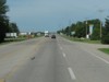 Westbound view showing the first reassurance markers past the western junction of PTH 5. ![]() Photograph taken in July 2010. |