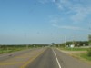 Westbound view approaching the entrance to Springhill Farms, a major hog processing plant. ![]() Photograph taken in July 2010. |