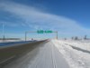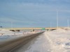Westbound view approaching a railway crossing. Only in the Socialist People's Republic of Manitoba do highway planners build a railway overpass and fail to include all the sets of adjacent tracks. ![]() Photograph taken in January 2014. |