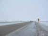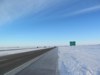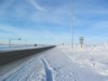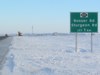 Eastbound view showing the marker indicating the end of PTH 190. ![]() Photograph taken in January 2014. |