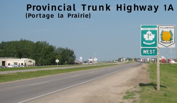 PTH 1A follows the former route of PTH 1 through Portage la Prairie along Saskatchewan Avenue. After the construction of the bypass around the city, the route through Portage la Prairie was redesignated as PTH 1A and it also shares a ceremonial Yellowhead designation along with PTH 1. Click here to show the route.