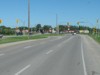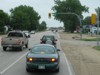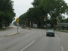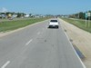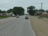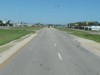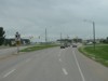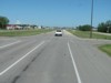 Westbound view approaching a railway crossing. ![]() Photograph taken in July 2011. |