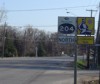 Northbound view showing the sign giving the distance to Lockport. ![]() Photograph taken in August 2009. |