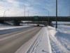 Southbound view at the junction of PTH 101. At right is the snow-covered Red River as well as a commonly-used parking lot used by weekend cyclists during the summer months. ![]() Photograph taken in January 2009. |