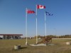 A look at the flags in front of the Co-Op service station that face PR 207. At the base of the display is a wagon of the same style that was pulled along the Dawson Trail by the first European settlers to the area. ![]() Photograph taken in September 2012. |
