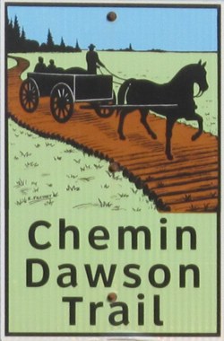 Southbound view showing a closeup of the first marker for the Dawson Trail. ![]() Photograph taken in April 2009. |