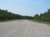 Westbound view at the end of the pavement. Off to the right is the trail that leads to the diversion dam on the Pinawa Channel. ![]() Photograph taken in July 2012. |