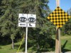 Northbound view at Road 113N showing a closeup of the marker. ![]() Photograph taken in October 2011. |