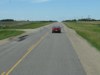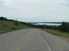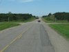 Westbound view approaching Ninette. In the background is Pelican Lake. ![]() Photograph taken in August 2011. |