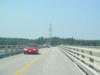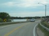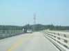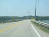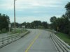 Westbound view on the bridge crossing the Winnipeg River. ![]() Photograph taken in July 2012. |