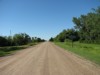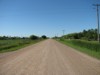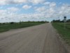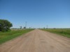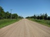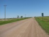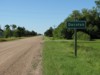 Southbound view showing the first southbound marker. In the distance is the village of Dacotah. At this spot, any Canadian can honestly say that they are in North Dacotah without needing to show a passport. ![]() Photograph taken in June 2009. |