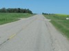 Eastbound view approaching Road 96W. At right is the sign indicating entry into the RM of Rosedale. ![]() Photograph taken in July 2011. |