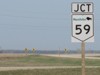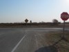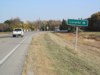 Westbound view showing the assembly of signs at the junction of PTH 59. ![]() Photograph taken in April 2010. |