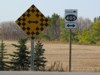Westbound view at Arnould Road showing the sign indicating entry into the RM of Ritchot. ![]() Photograph taken in September 2012. |