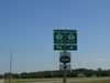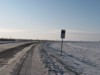 Northbound view approaching the junction of PTH 1 showing a closeup of the marker. ![]() Photograph taken in February 2009. |