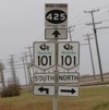 Westbound view approaching the junction of PTH 101 and the start of PR 425 showing a closeup of the markers. ![]() Photograph taken in October 2009. |